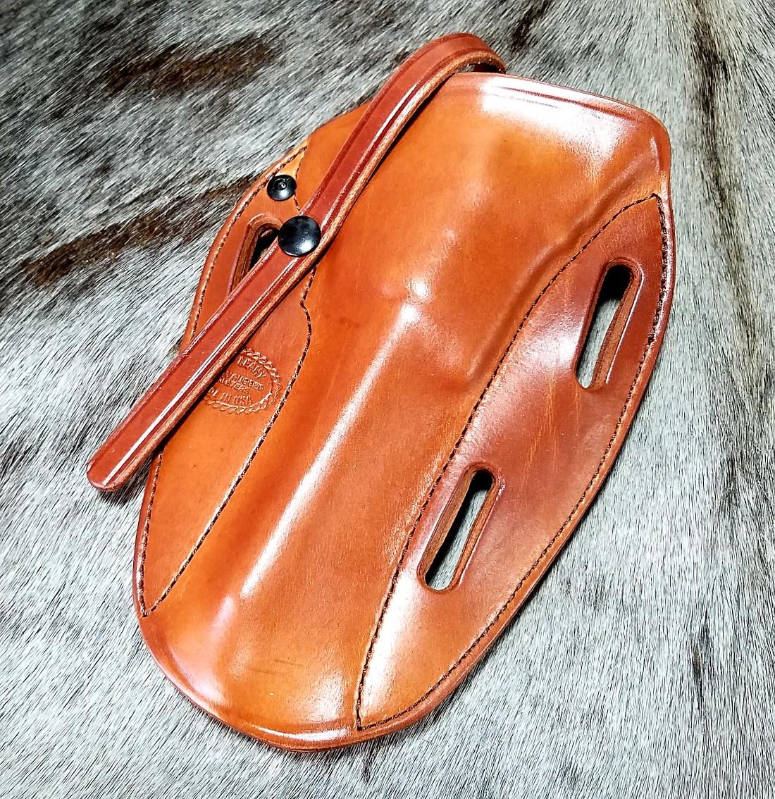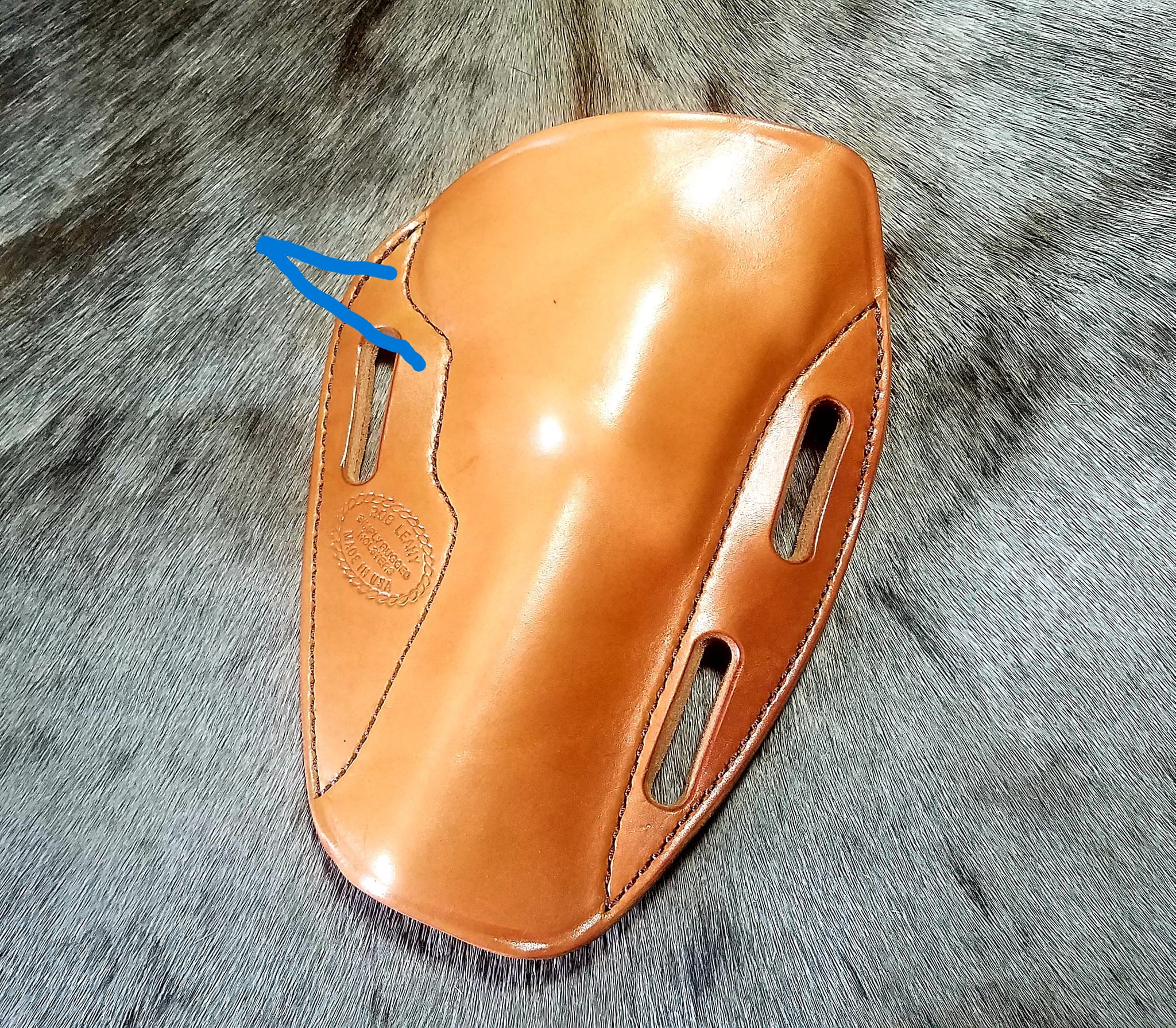 The Hammer strap kit you will have to set a snap and drill or punch a couple of holes. We will do this no charge if you mail us the holster with a note and order the strap. THE BLUE LINES POINT TO WEAR TO LOCATE THE SNAP AND BOLT.