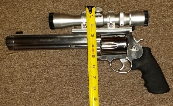 1. Profile (side view) picture of your scoped revolver. You will need to include, in the picture, a ruler measuring from the bottom the trigger guard to the top of the scope (below is an example of the information we need).