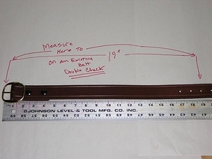 Take an existing belt and lay it flat, measure from the end of the buckle to the hole that you use most (don't measure a belt that stretches). Again don’t over think this. Double check by running the tape measure around your waist through the belt loops with no belt on. Don't give us a stamped measurement off another belt. Generally, this measurement will be larger than you think your waist size is.If you GUESS and GET IT WRONG WE WILL CHARGE FOR A NEW BELT.